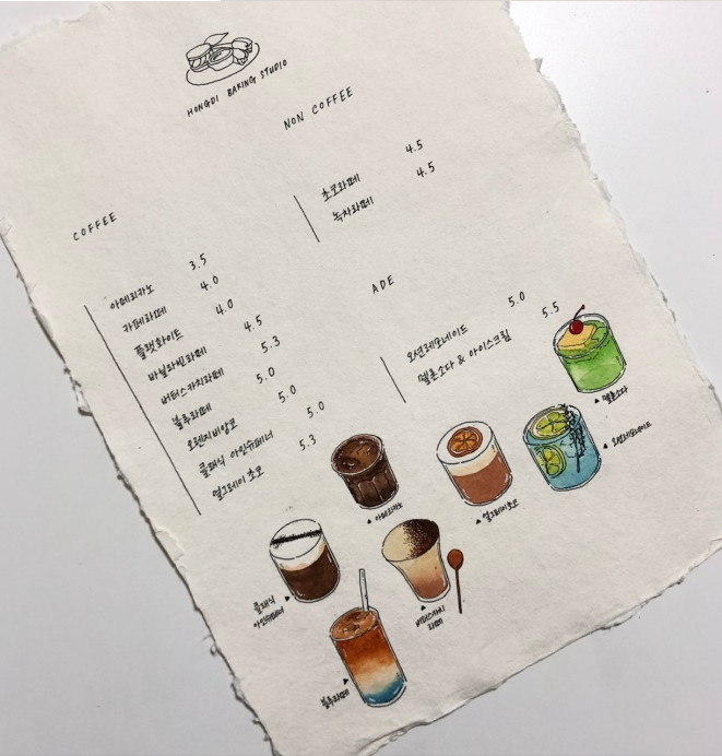 홍디 베이킹 스튜디오의 메뉴판입니다 !