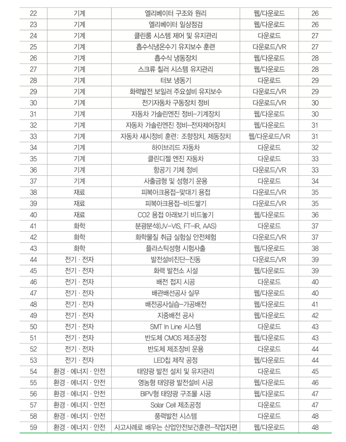 다음은 가상훈련 콘텐츠 목록인데요 !