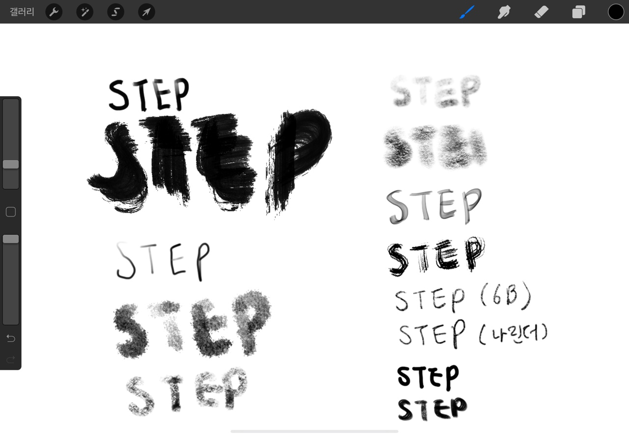 여러 브러쉬로 글씨를 써보면서 선호하는 느낌의 브러쉬를 선택했어요.