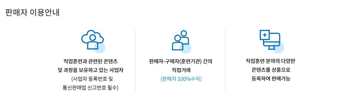 직업 훈련 관련 이러닝 콘텐츠를 보유한 사업자라면 누구나 판매할 수 있고,
