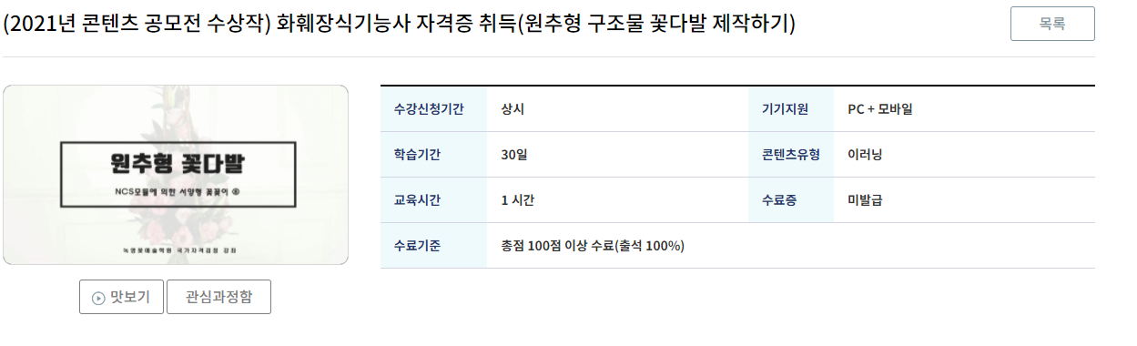 농림어업에서는 <화훼장식기능사 자격증 취득>이 인기과목이네요 ! ◄:•D