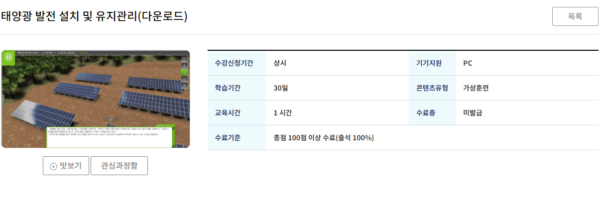 환경, 에너지, 자원에서는 <태양광 발전 설치 및 유지관리> 가 제일 인기과목입니다. (♡´𓋰`♡)