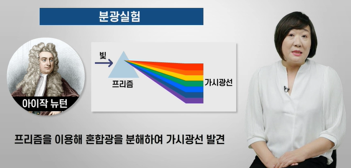 아이작 뉴턴이 프리즘을 이용해 혼합광을 분해하여 가시광선을 발견했어요( *ˊᵕˋ)