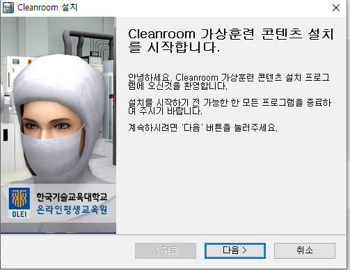 클린룸 가상훈련 콘텐츠는 종료됩니다 !