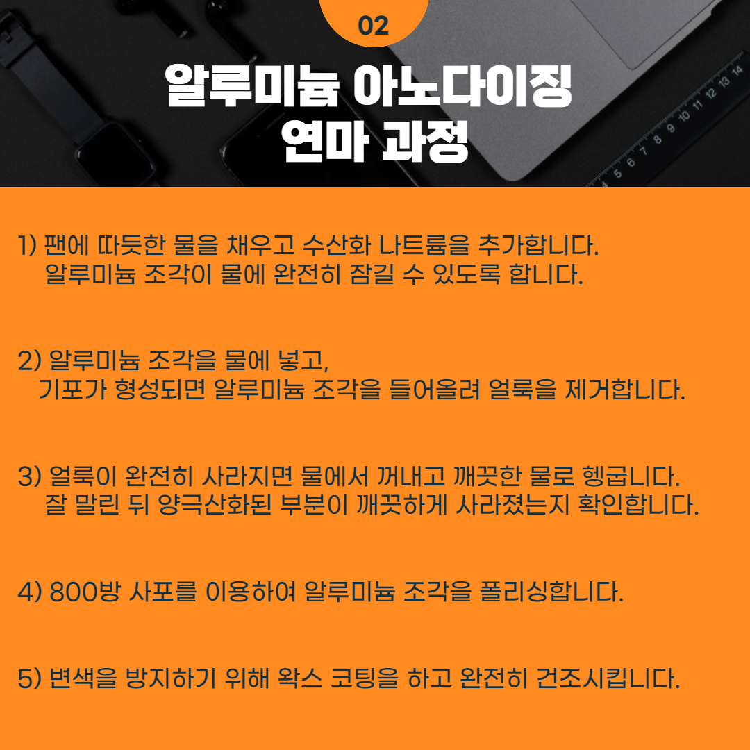 우선 아노다이징 처리된 알루미늄을 연마하는 과정은