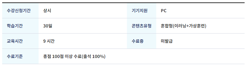 9회차부터 12회차는 이러닝으로 학습이 가능하다고 합니다.😉