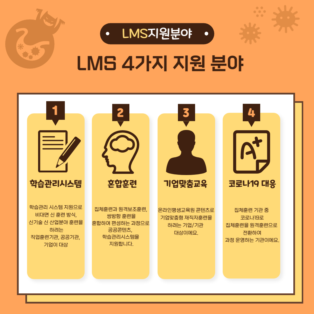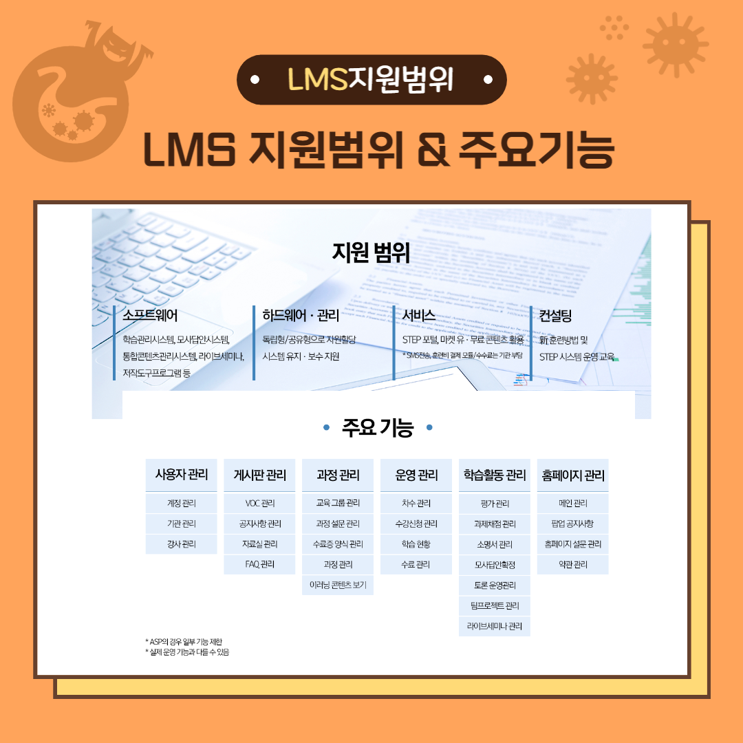 LMS에는 다양한 지원범위와 주요 기능이 있는데요!