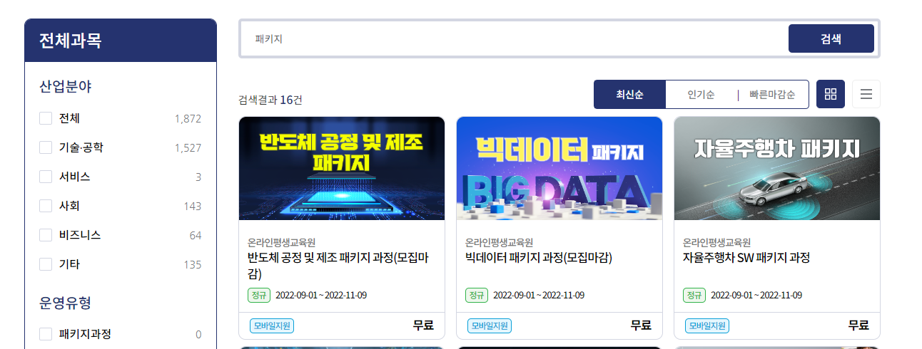 쉽게 패키지 과정을 찾아보실 수 있어요 ! 🖐🏻