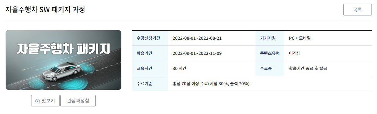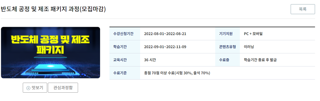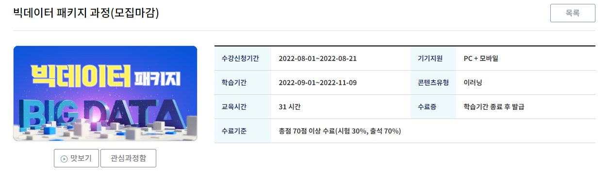 학습 종료 후 패키지 과정에 대한 수료증과 개별 과정에 대한