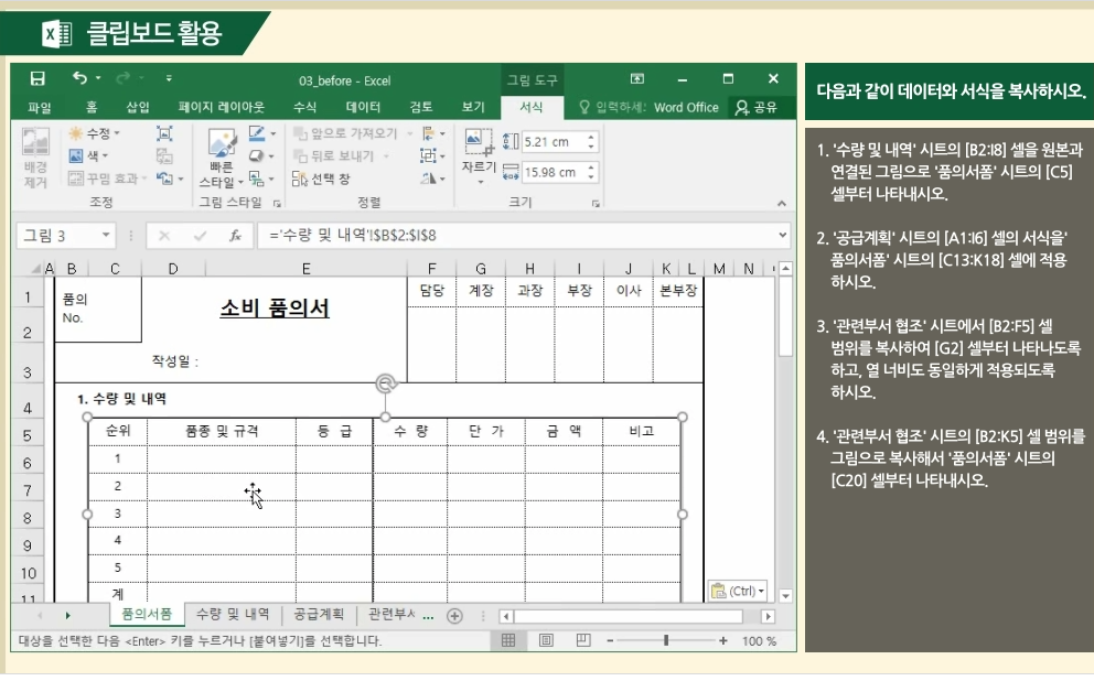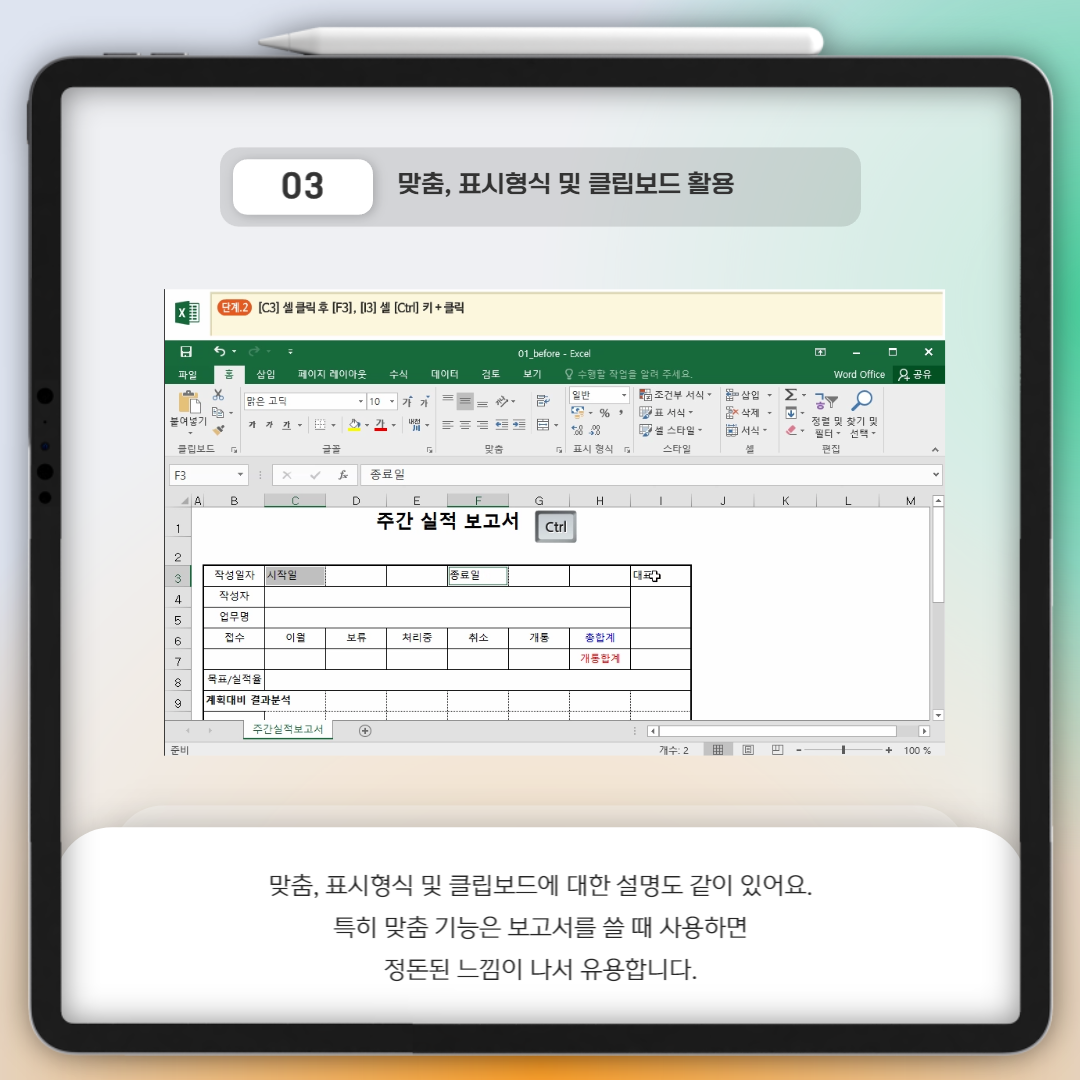 "맞춤, 표시 형식 및 클립보드 활용"