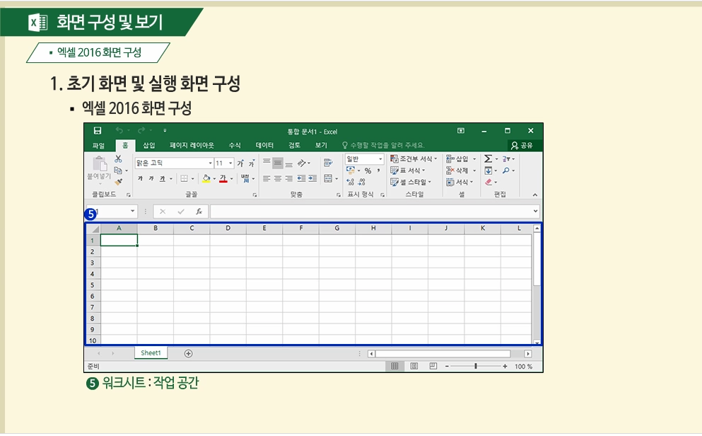 이렇게 엑셀의 기본 구성부터
