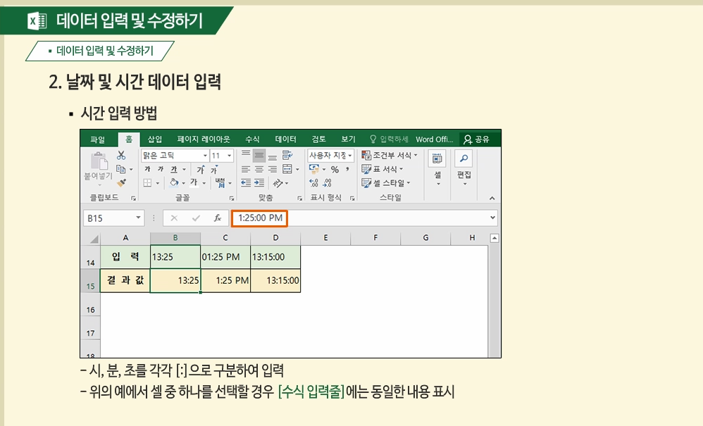 엑셀에 시간 및 날짜 데이터를 입력할 수 있다는 사실을