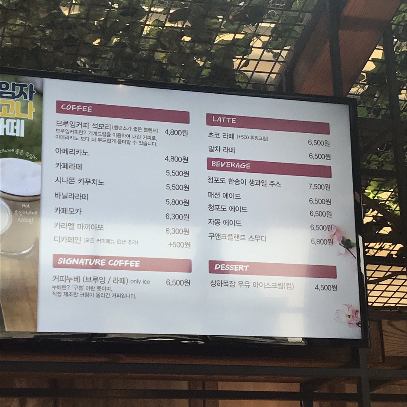 전국적 유명 카페에 비해서는 커피가 많이 비싼 편은 아니네요.