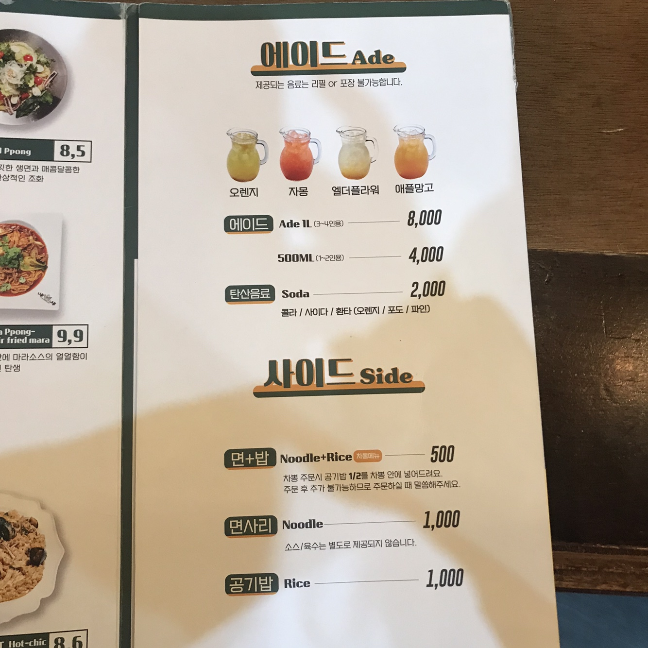 음 그리고 에이드 메뉴가 너무 적고 약간 대중적인 맛이 아니라서 ..